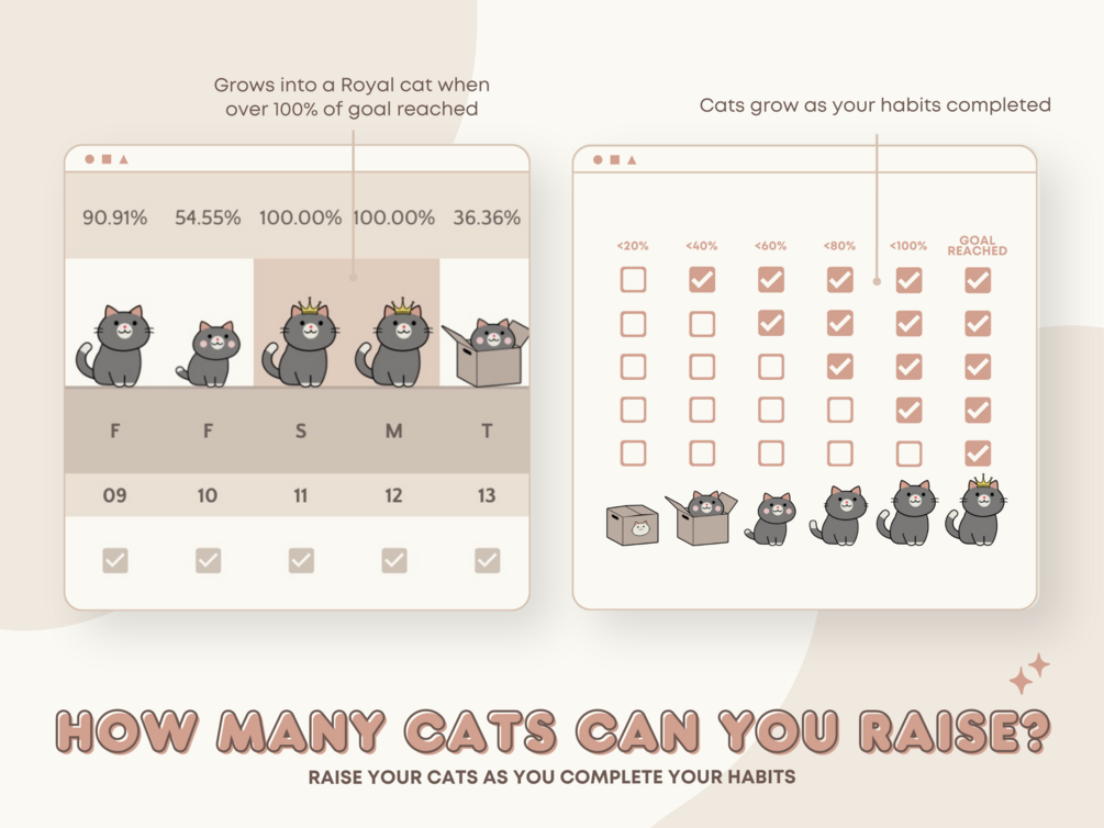 Using the Raising Cats concept, this Habit Tracker Spreadsheet shows users how your habit tracker should look. It is designed to be extremely adorable, entertaining, and simple to use.