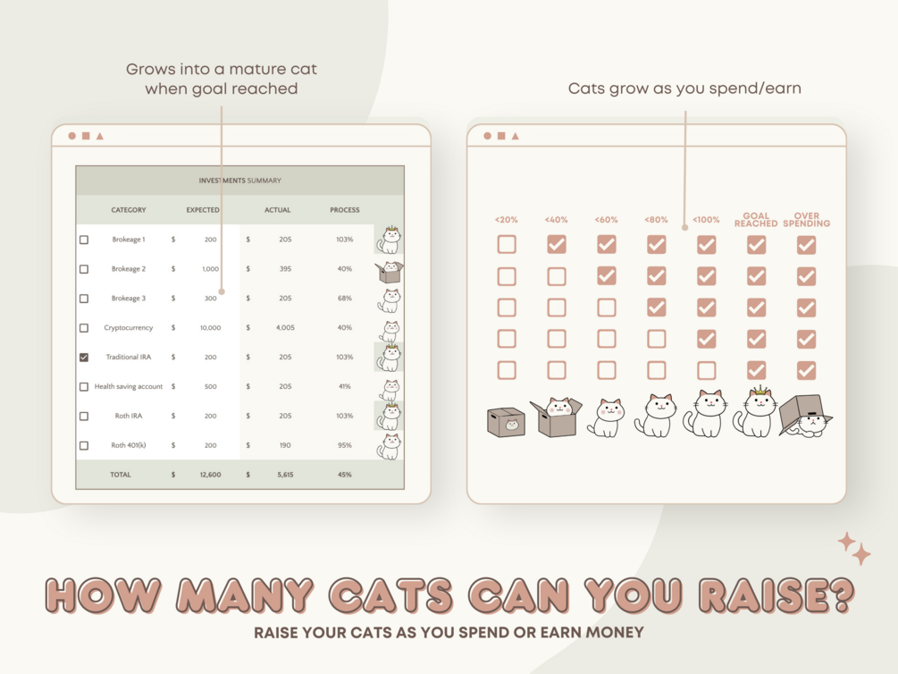 Cats/Dogs/Rabbits grow as you spend, and become sad when you overspend.