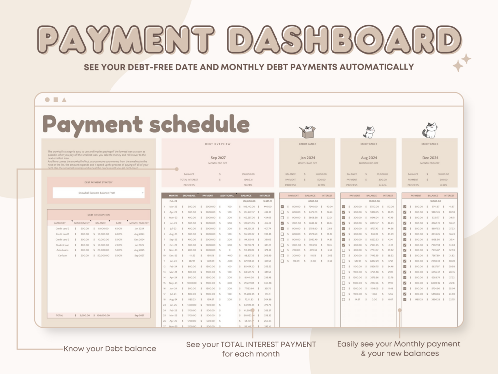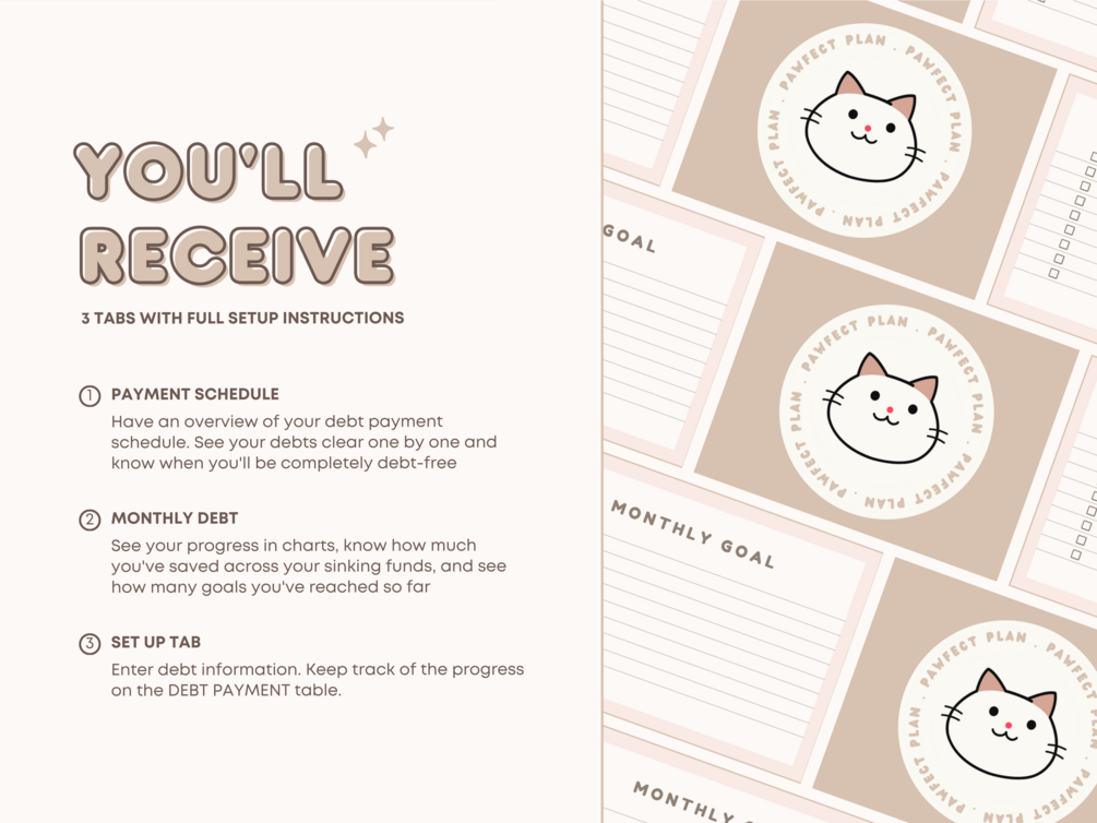 It's made to be super cute, fun, and easy to use, and it only comes with what you need. The spreadsheet will take care of the rest after you simply enter the information for your debts!