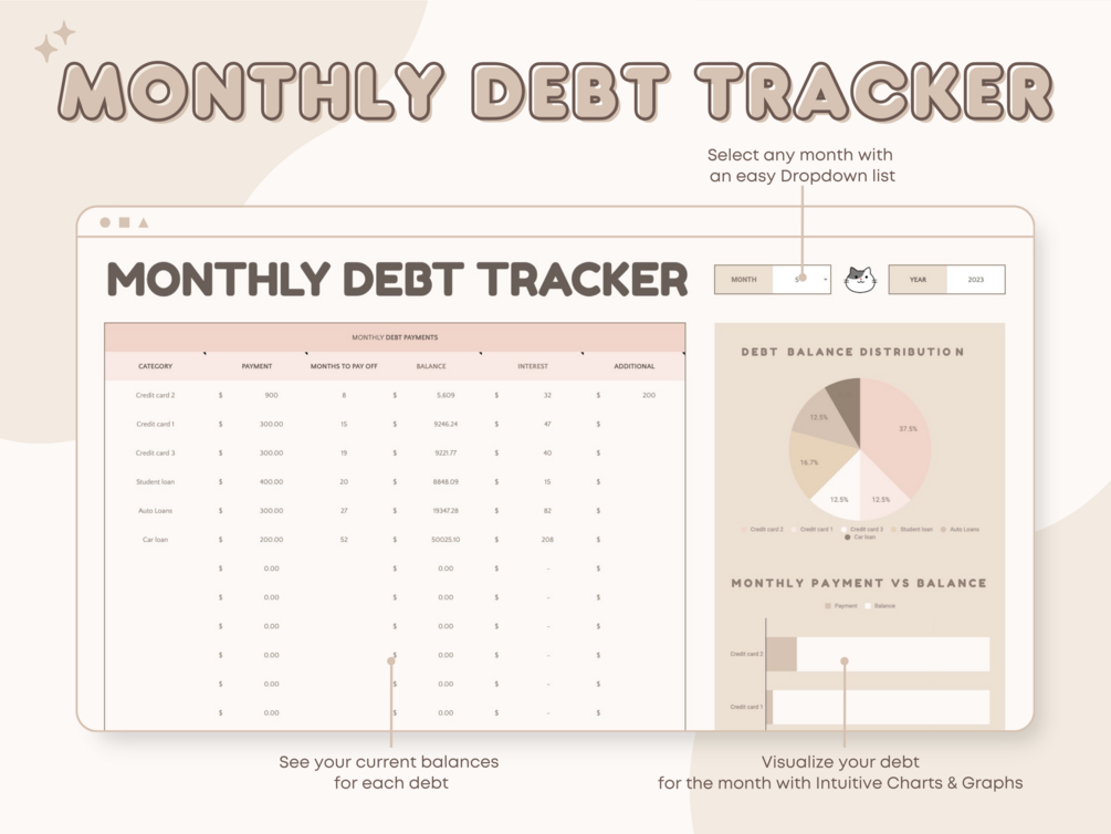 ✿ MONTHLY DEBTS DASHBOARD - Track your debt payment and their balance